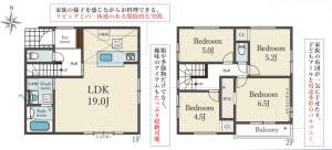- システムキッチン、カウンターキッチン、食器洗浄乾燥機、洗浄便座、浴室乾燥機、ウォークインクローゼット、モニタ付インターホン、1BOX駐車可、駐車場2台分、床下収納、トイレ2箇所