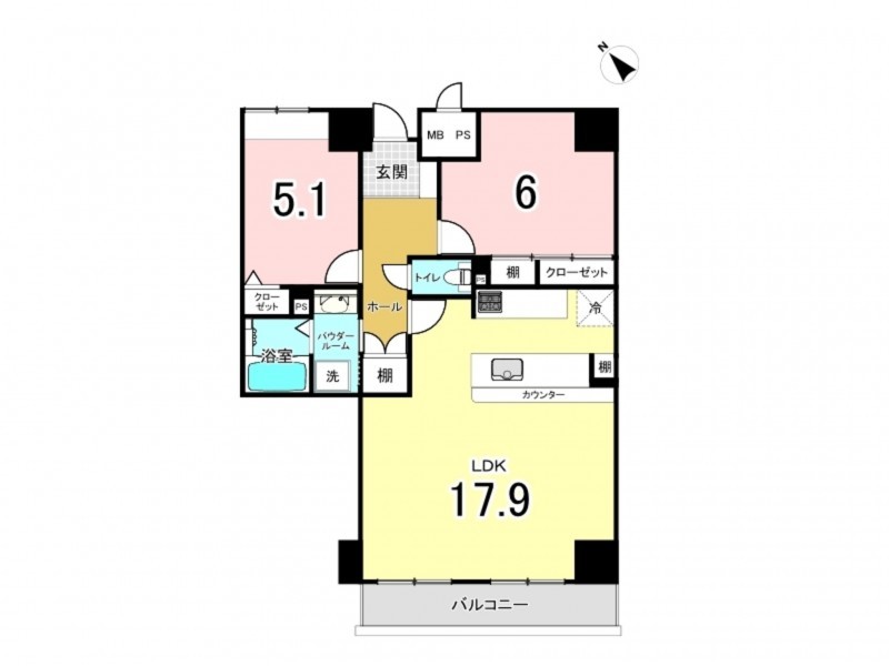 5.93㎡の広々としたバルコニーでは、洗濯物や日光浴も快適に楽しめます。